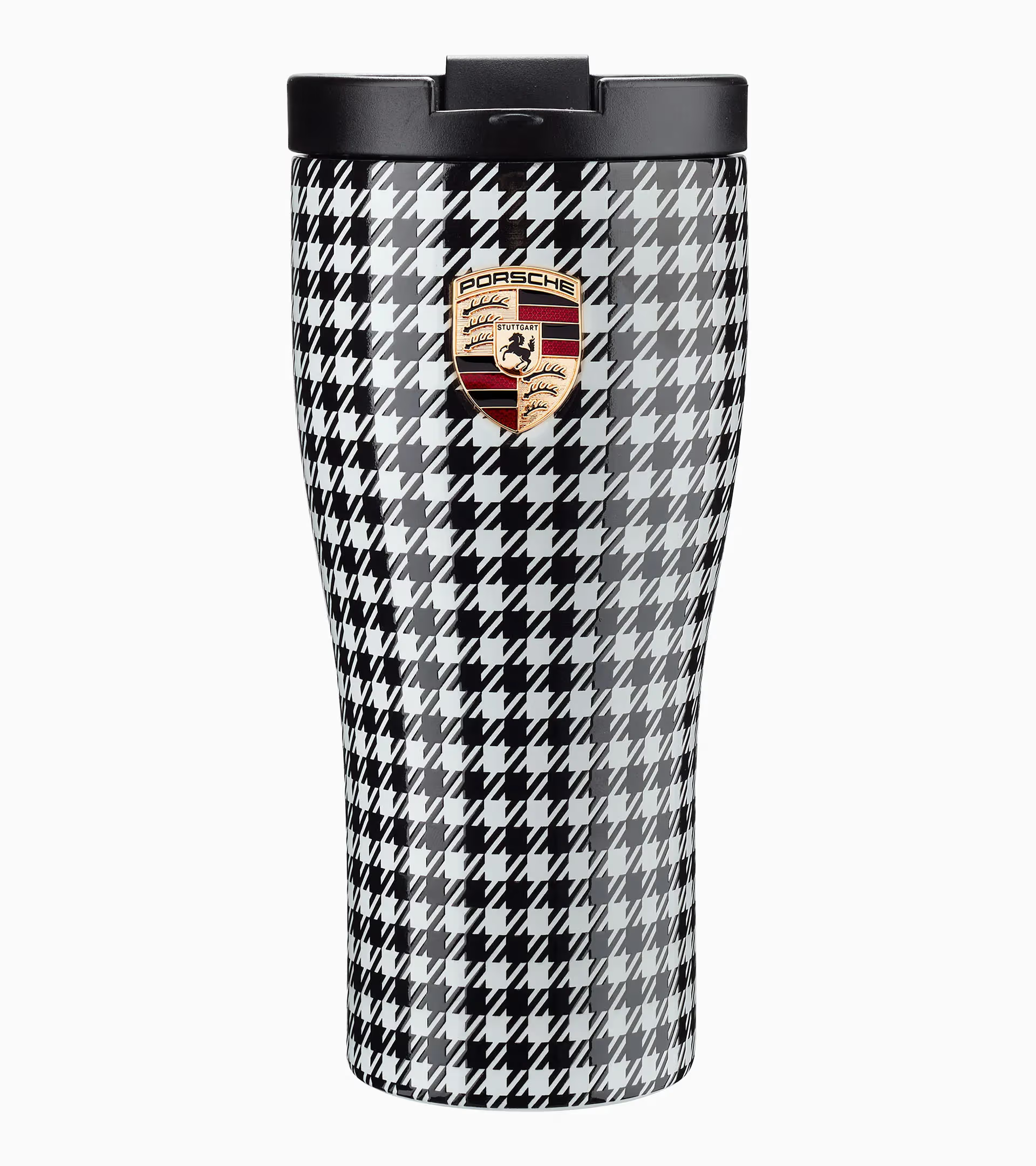 100% leak-proof lid. Capacity: approx. 460 ml. Embossed Porsche lettering on the lid. For hot and cold drinks. Made of double-walled stainless steel. Porsche thermos cup in Pepita design. With high-quality gift packaging. Item no.: WAP0504050SPEP