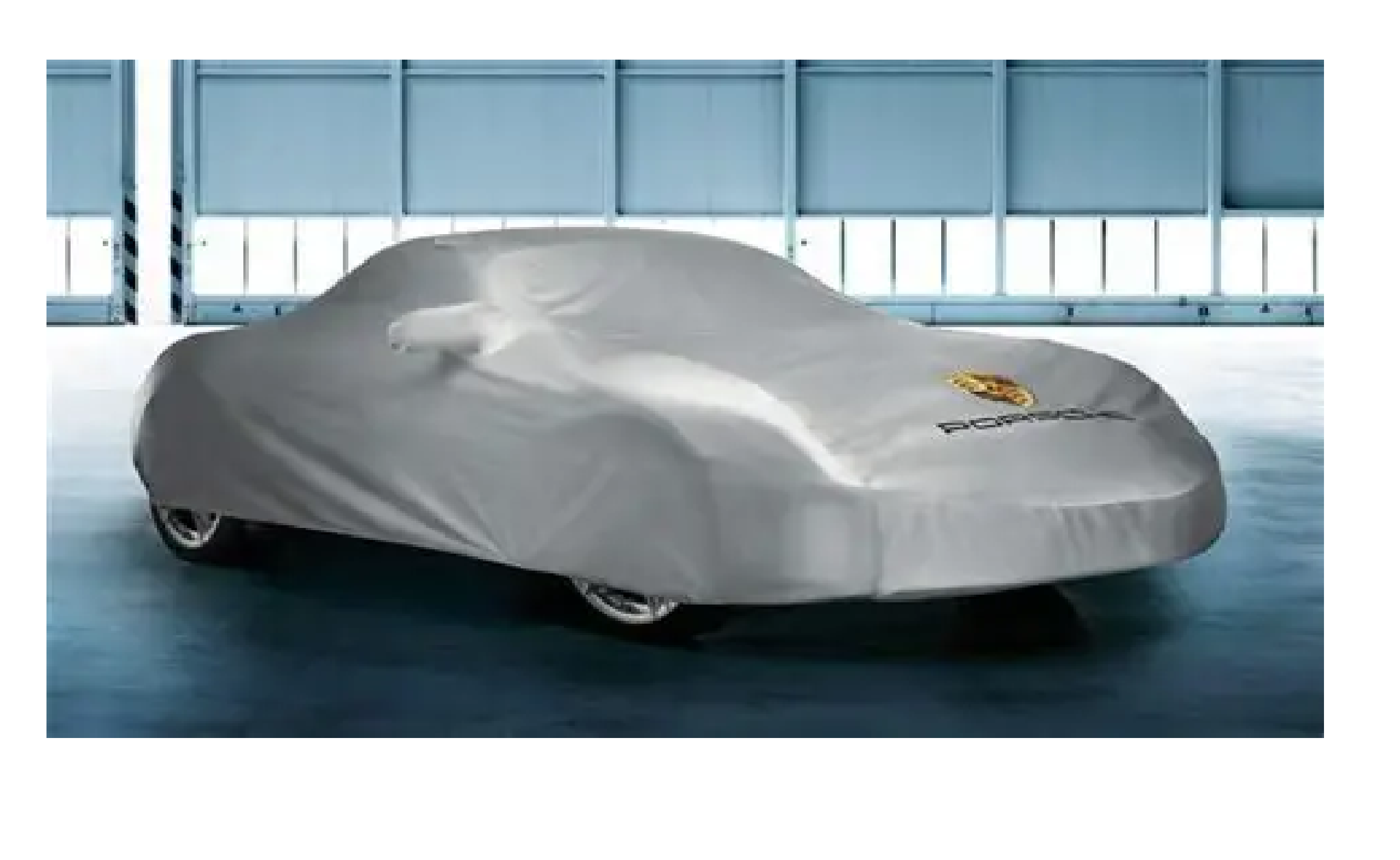 Perfect-fit outdoor vehicle cover made from water-repellent material. With full-color Porsche Crest and logo. Including anti-theft protection.